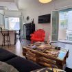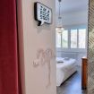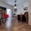 L'arredo segue uno stile artistico variegato, con un mix di stili e colori pop ed industriali, come il rosso acceso della poltrona in soggiorno, il cervo bianco in corridoio e l'elegante resina grigia del pavimento.