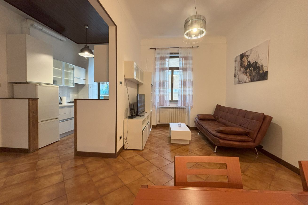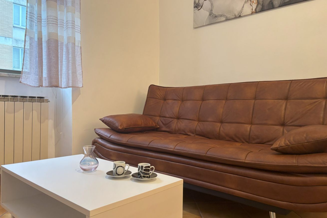 Accogliente e moderno, questo appartamento è la scelta ideale per chi desidera un soggiorno tranquillo, senza rinunciare alla comodità dei servizi. Con una luminosa zona giorno open space e una camera da letto confortevole, offre uno spazio perfetto per lavorare, rilassarsi o semplicemente staccare dal ritmo cittadino. I toni neutri del bianco, nero e pelle marrone creano un’eleganza sobria e contemporanea. A pochi passi dal Sanatorio Triestino e dal Teatro La Contrada.