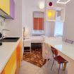 Con i suoi 30 mq, Pop è a tutti gli effetti un piccolo monolocale con una cucina a vista dotata di un piccolo frigo, lavello, piastra a induzione, forno a microonde, macchinetta per il caffè e uno spazioso tavolo da pranzo.