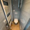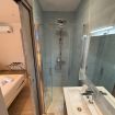 I bagni, con rivestimenti originali e luci soffuse, mantengono uno stile pulito e contemporaneo. Alcuni dettagli decorativi richiamano il mondo navale, in omaggio alla Barcolana e alla tradizione marittima della città.